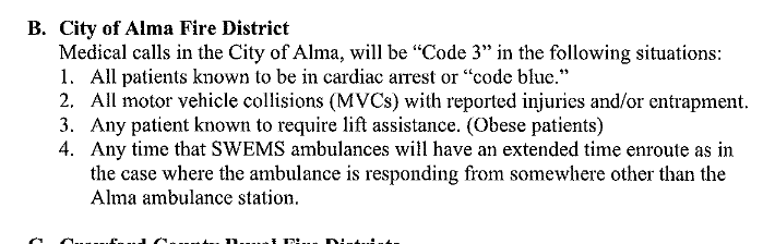 Medical calls – page only if SWEMS requests, or trigger listed below.