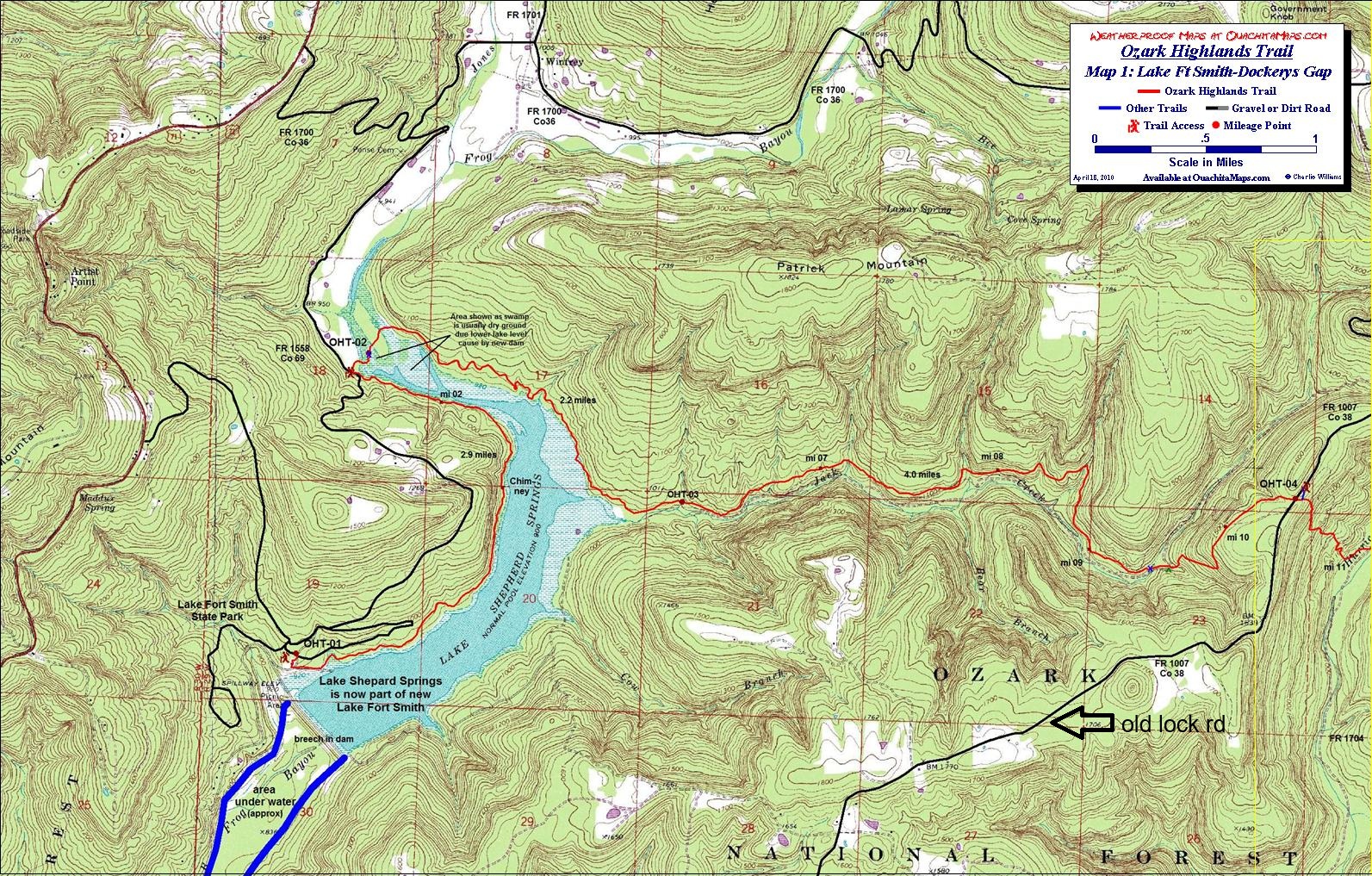 | Ozark Highlands Trail | Starts at Lake Fort Smith, 270 miles | |